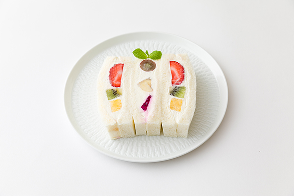 4〜5種類ほどの季節のフルーツを、フロマージュブラン入り生クリームとサンドにしました。