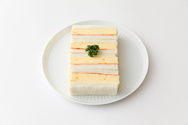 食パンの1枚には特製マヨネーズ、もう1枚にケチャップを塗って、ふんわり焼きあがったオムレツを挟みました。